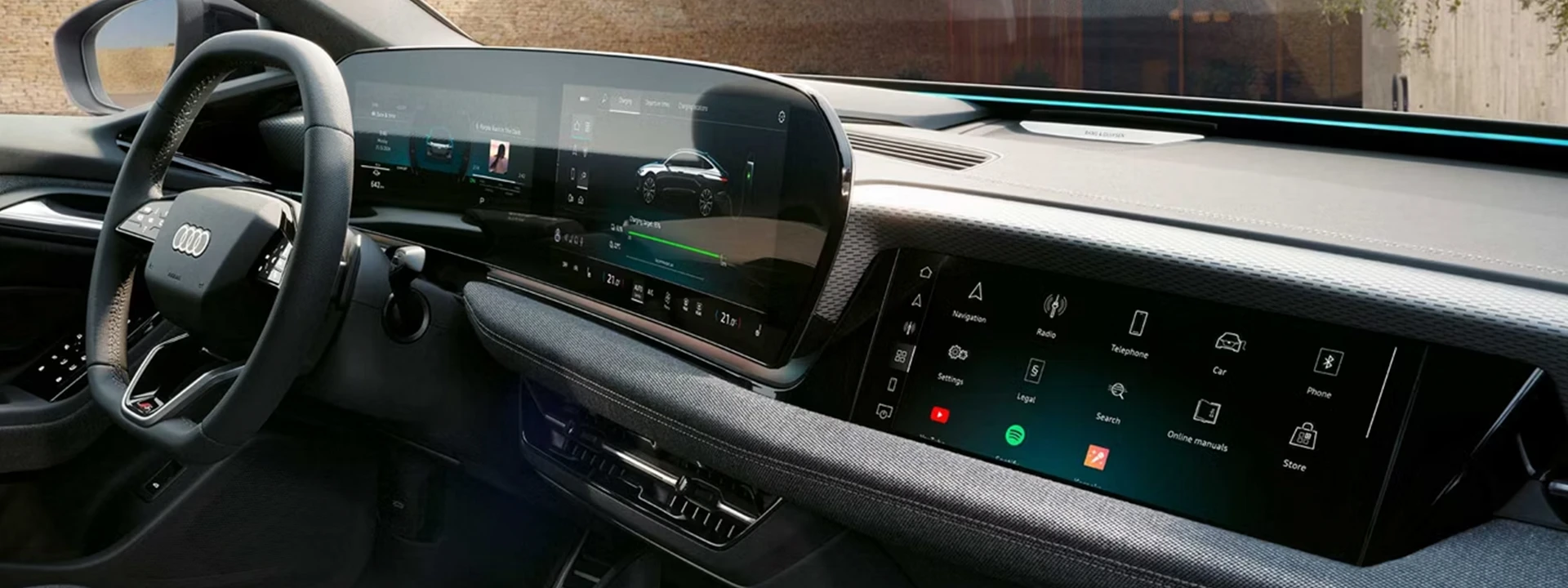 O Audi Virtual Cockpit Plus exibe as informações de condução mais importantes em uma das três variantes de layout, com operação personalizável, navegação de menu intuitiva e display orientado à direção.