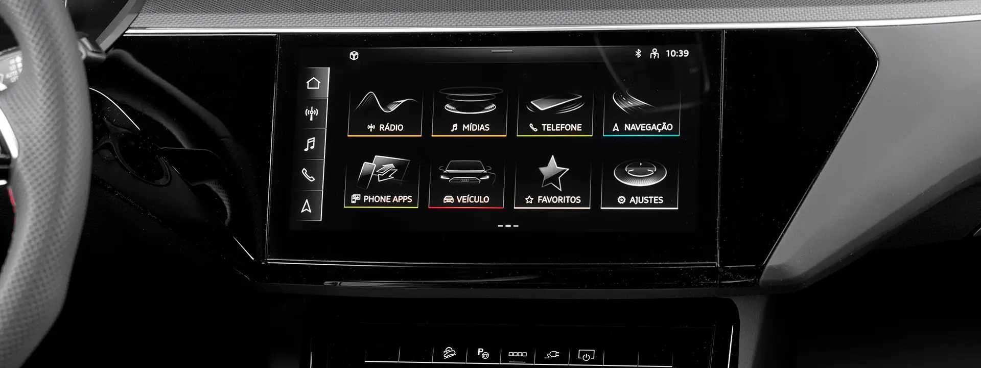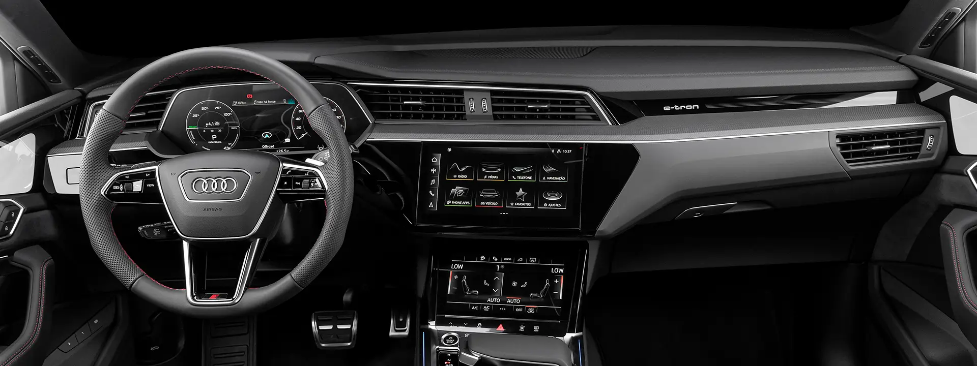 Detalhes como o nome do modelo gravado a laser no pilar B, os anéis Audi em um novo visual e os logotipos e-tron são uma expressão da linguagem de design em constante evolução.