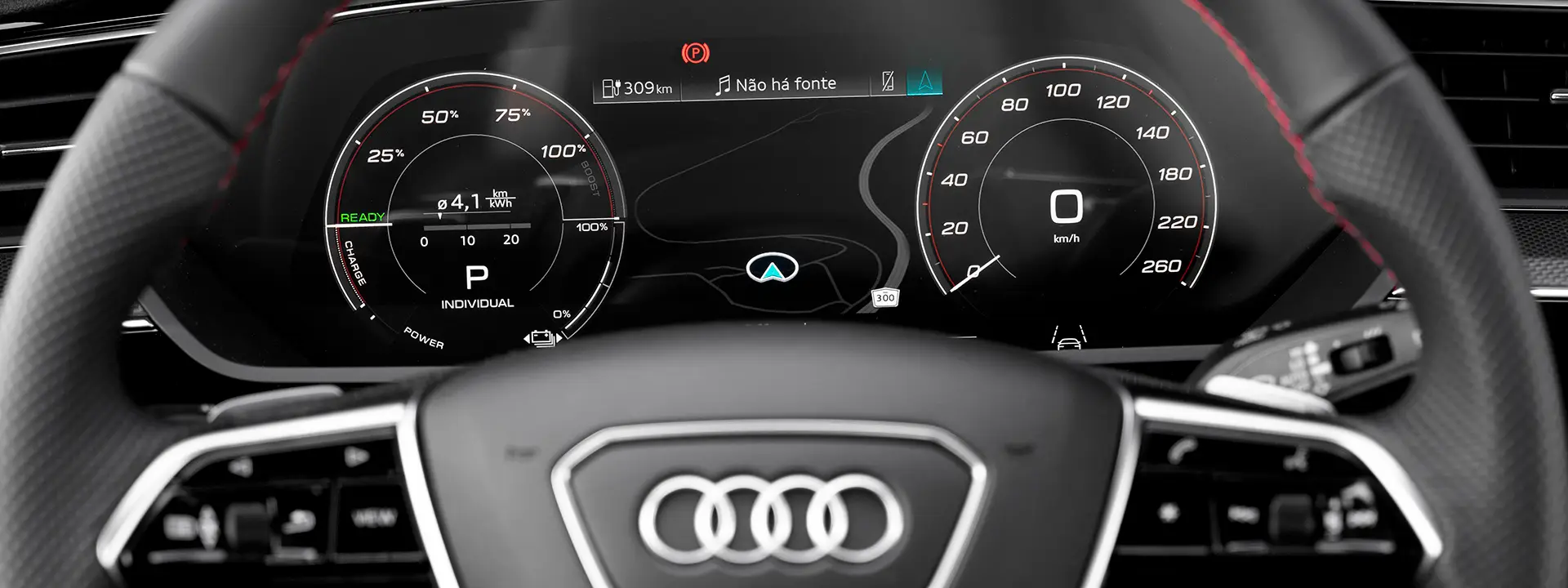 A tração integral quattro totalmente elétrica regula a distribuição ideal do torque de tração permanente e totalmente variável entre os dois eixos, com precisão e e rapidez, resultando em alta estabilidade direcional e excelente tração.